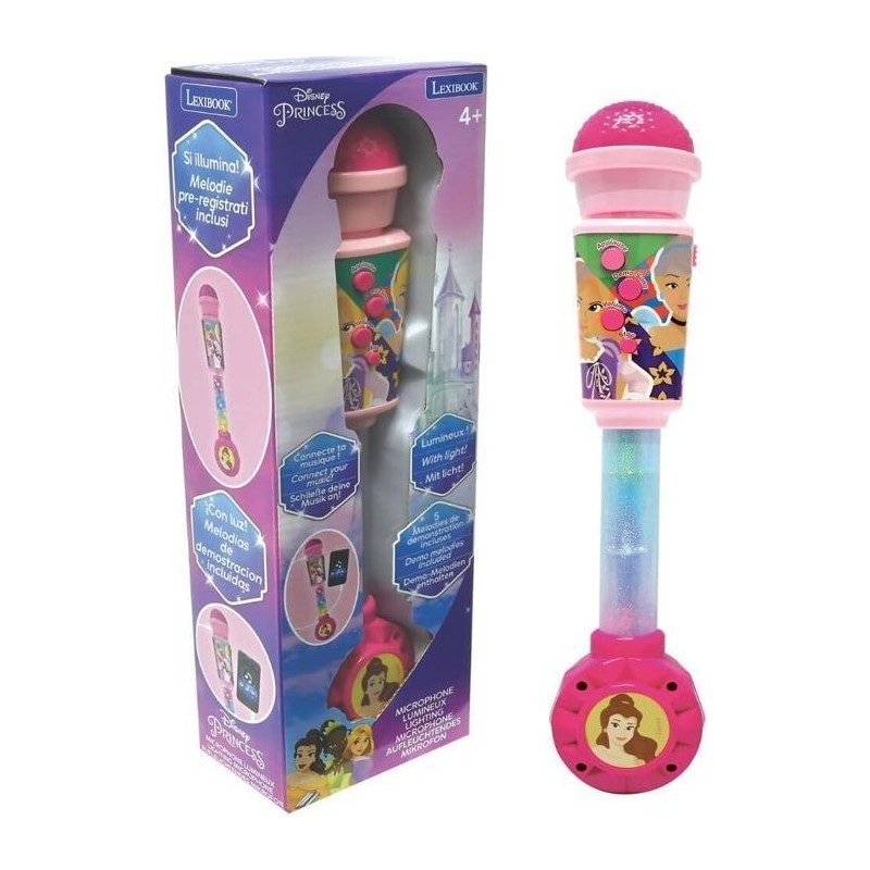 Microphone Princesses Disney avec tube lumineux, enceinte (entrée auxiliaire), mélodies et effets sonores