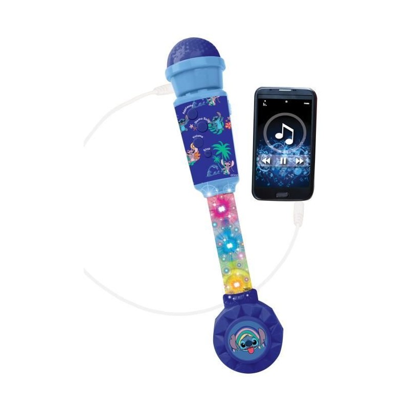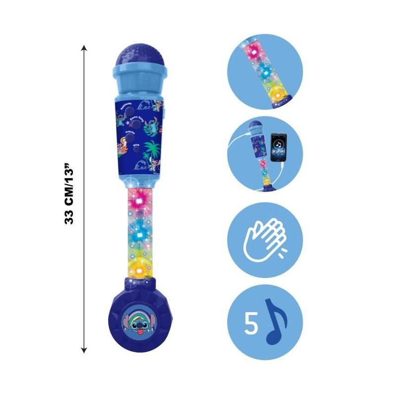 Microphone Stitch lumineux, enceinte (entrée auxiliaire), mélodies et effets sonores