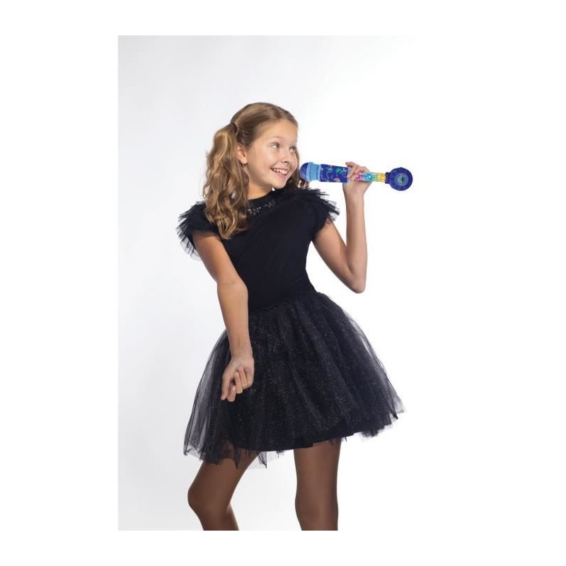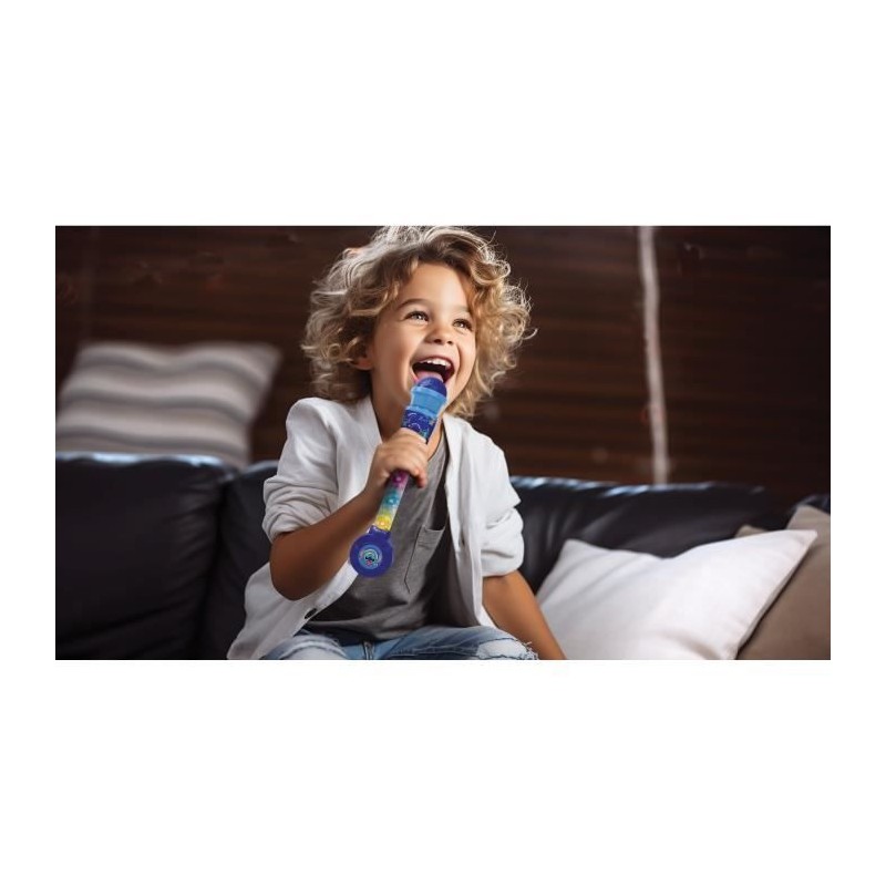 Un microphone lumineux parfait pour les chanteurs en herbe ! Effets lumineux : chante avec les lumieres multicolores ! Ecoute la foule t'acclamer et applaudir ta performance en appuyant sur le bouton du micro ! 5 mélodies pour chanter et danser pendant des heures ! Haut-parleur intégré !