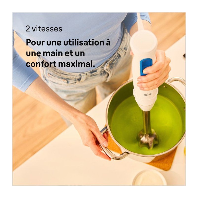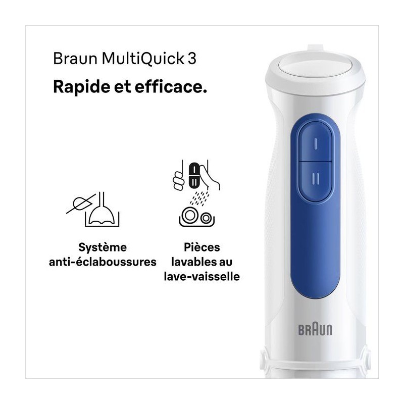 Mixeur plongeant - BRAUN - MultiQuick MQ30001M - 900 W - 2 vitesses - Blanc / Bleu