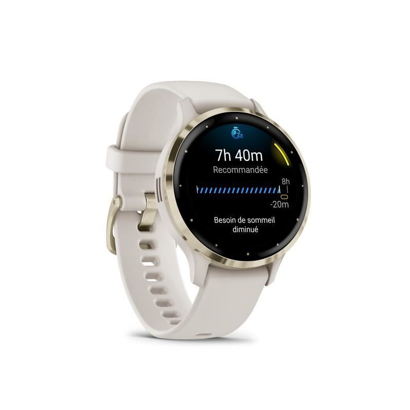Montre GPS connectée Venu 3S GARMIN, 30,4mm (1,2), Acier Soft Gold, boîtier ivoire et bracelet en silicone ivoire
