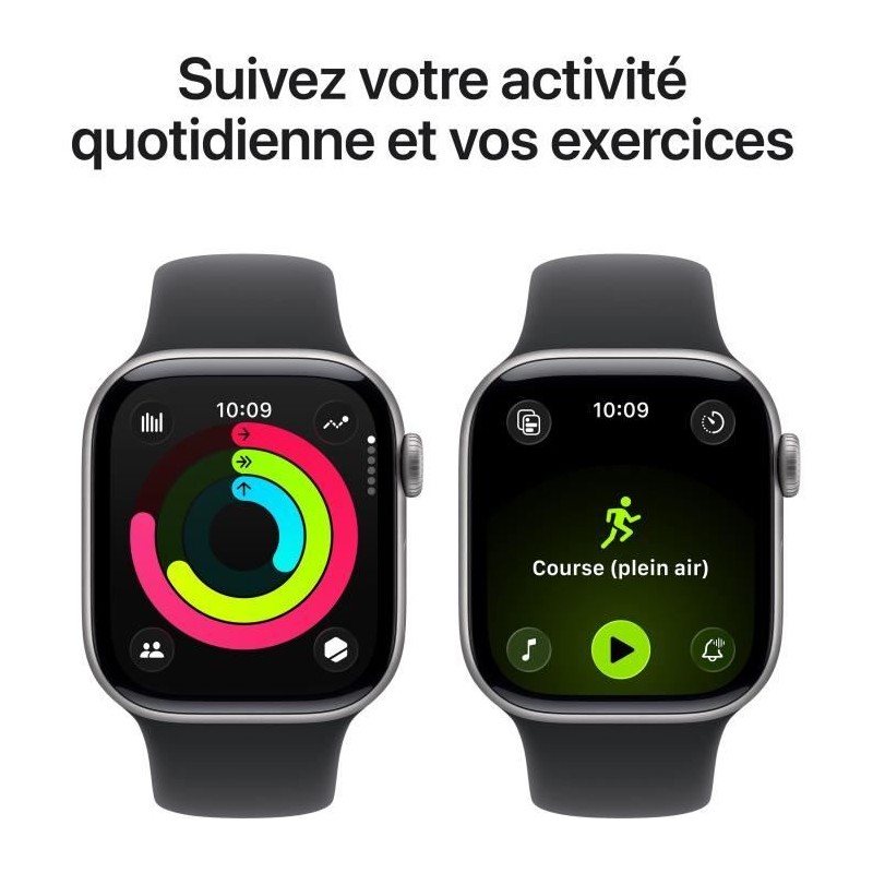 Apple Watch Series 11 GPS - 42mm - Boîtier Space Grey Aluminium - Bracelet Black Sport Band - M/L