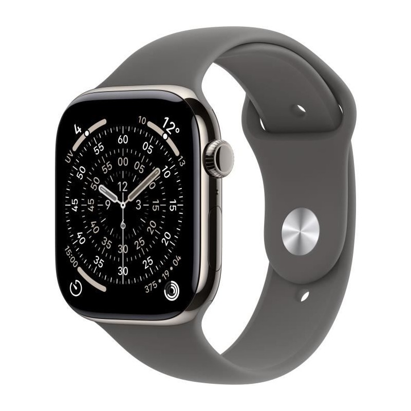 Apple Watch Series 11 GPS + Cellular - 46mm - Boîtier Natural Titanium - Bracelet Stone Grey Sport Band - M/L