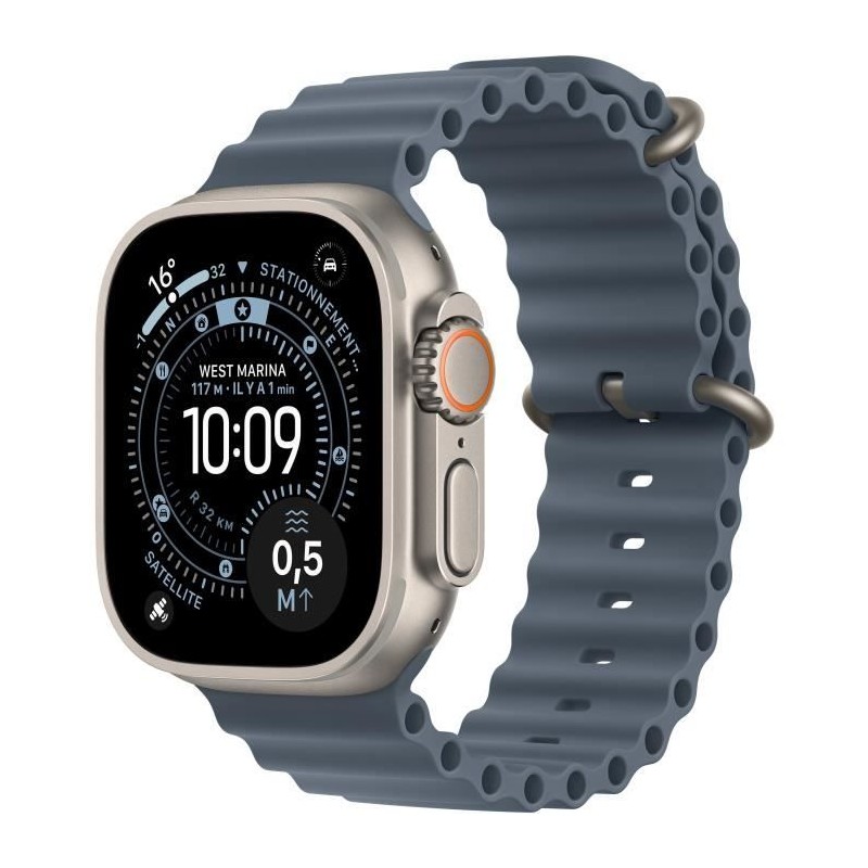 Apple Watch Ultra 3 GPS + Cellular - 49mm - Boîtier Natural Titanium - Bracelet Anchor Blue OceanBand