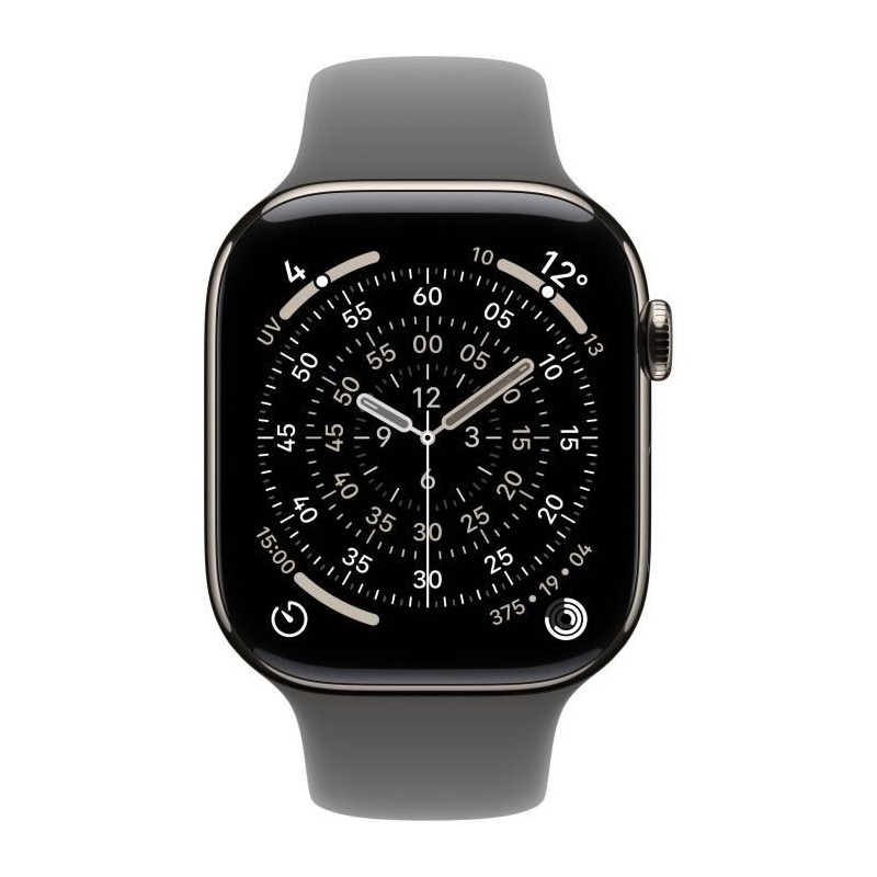 Apple Watch Series 11 GPS + Cellular - 42mm - Boîtier Natural Titanium - Bracelet Stone Grey Sport Band - M/L
