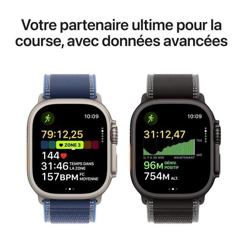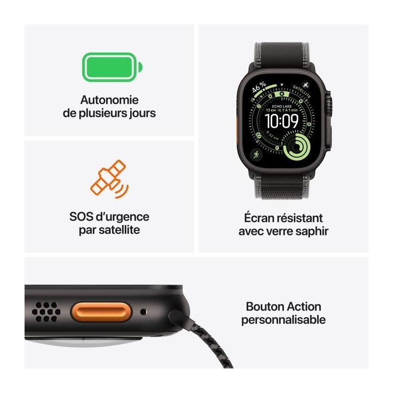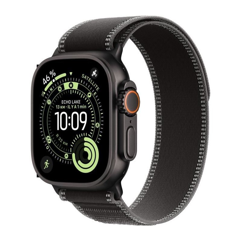 Apple Watch Ultra 3 GPS + Cellular - 49mm - Boîtier Black Titanium - Bracelet Black/Charcoal Trail Loop - M/L