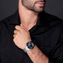 Montre en acier inoxydable sur un bracelet de coloris bleu et gris. Cadran de coloris bleu, doté d'un affichage analogique. Mouvement quartz. Montre water resistant.