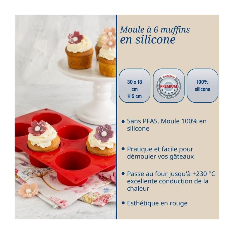 Ensemble de 2 moules a muffins 6 empreintes - DR oeTKER - Flexxibel Love - 30 x 18 cm