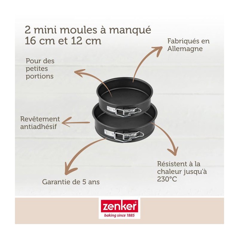Lot de 2 mini moules a manqué a charniere - ZENKER - Special Mini - 12 et 16 cm