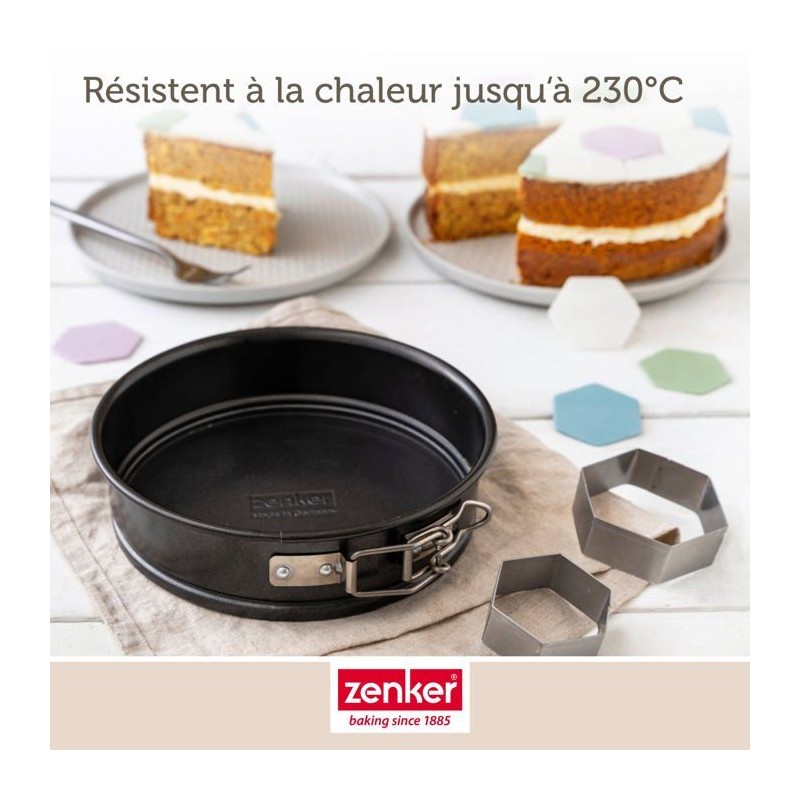 Zenker vous propose ce lot de 2 mini moules a manqué ou moules ronds pour préparer des gâteaux aux pommes, des gâteaux au chocolat, des gâteaux natures et bien d'autres. LE PETIT + : Notre lot de 2 moules a manqué mini est parfait pour réaliser des gâteaux pour une ou deux personnes afin de ne pas gaspiller. COMPOSITION : Ces moules a charniere sont fabriqués en Allemagne en acier avec un revetement antiadhésif en ILAG Special pour un démoulage parfait. DIMENSIONS : Les diametre de ces 2 moules a gâteaux sont différents, l'un mesure 16 cm et l'autre 12 cm, ils sont tous deux hauts de 4 cm. UTILISATION : Allant au four jusqu'a 230°C, ces moules a charniere ronds se nettoient a la main, ils vous permettent de préparer des gâteaux en tres petite quantité Zenker est une marque faisant partie du groupe Fackelmann Brands et elle propose une large gamme d'ustensiles de pâtisserie et de moules a gâteaux. Concernant les ustensiles de pâtisserie, Zenker frappe fort en mettant a disposition des ustensiles de préparation mais aussi de décoration pour les pâtissiers confirmés. Côté moules a gâteaux c'est une marque pionniere qui propose des innovations telles que les moules a gâteaux en silicone et fibre de verre ne nécessitant pas de matiere grasse et proposant des résultats de cuisson incroyables. Zenker possede donc une large gamme d'accessoires et d'ustensiles pour vous accompagner dans vos recettes du quotidien mais aussi pour des évenements exceptionnels comme les fetes, les anniversaires, les mariages, etc.