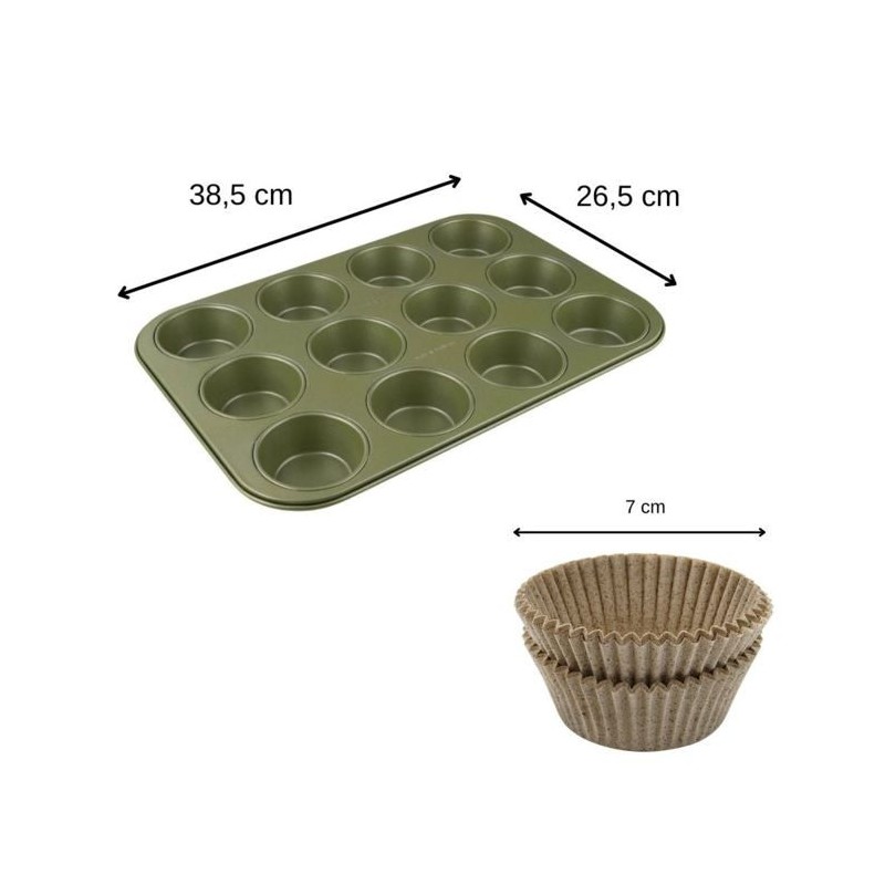 LE PETIT + : Le revetement écologique en cire de carnauba (ILAG Maximizing Green) du moule 12 empreintes permet de cuire efficacement vos gâteaux et cupcakes tout en étant anti-adhérent. COMPOSITION et ENTRETIEN : Moule : Acier inoxydable, Caissette : papier | Lavage a la main et au savon pour le moule, il passe au four jusqu'a 180°C les caissettes sont a usage unique. DIMENSIONS : Moule : 38,5 x 26,5 x 3 cm | Caissettes : 7 x 5 x 3 cm. CONTENU : 1x moule 12 empreintes + 1x lot de 40 caissettes Zenker propose cet ensemble comprenant 1 moule a muffins avec un lot de 40 caissettes en papier bio. Ce moule comportant 12 empreintes est idéal pour cuire des petits gâteaux comme les muffins salés, sucrés ou les cupcakes. Les muffins sont de petits gâteaux qui peuvent etre dégustés salés pour l'apéritif : muffins au fromage , muffins au chorizo, etc. Ils peuvent aussi etre appréciés sucrés comme c'est le cas des muffins aux pépites de chocolat, des muffins aux pommes ou encore des muffins aux myrtilles. Zenker est une marque faisant partie du groupe Fackelmann Brands et elle propose une large gamme d'ustensiles de pâtisserie et de moules a gâteaux. Concernant les ustensiles de pâtisserie, Zenker frappe fort en mettant a disposition des ustensiles de préparation mais aussi de décoration pour les pâtissiers confirmés. Côté moules a gâteaux c'est une marque pionniere qui propose des innovations telles que les moules a gâteaux en silicone et fibre de verre ne nécessitant pas de matiere grasse et proposant des résultats de cuisson incroyables. Zenker possede donc une large gamme d'accessoires et d'ustensiles pour vous accompagner dans vos recettes du quotidien mais aussi pour des évenements exceptionnels comme les fetes, les anniversaires, les mariages, etc.