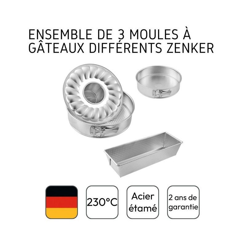 Ensemble de 3 moules a gâteaux - ZENKER- 30, 18 et 26 cm