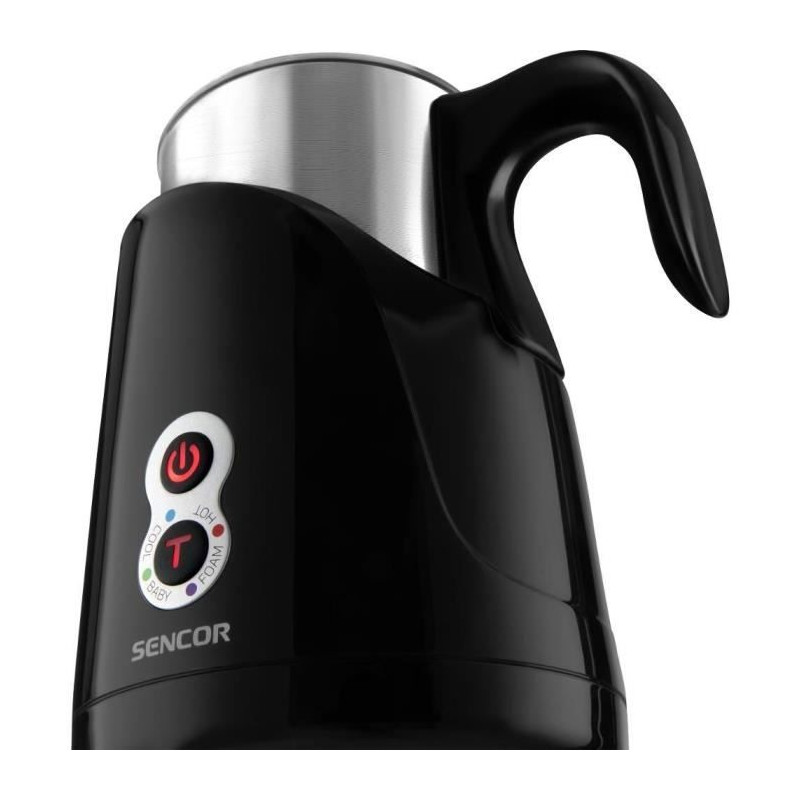 Le mousseur a lait Sencor SMF 4000BK offre 4 modes automatiques pour préparer des boissons chaudes ou froides. Avec sa technologie de chauffage par induction et son corps en acier inoxydable, il garantit une mousse parfaite sans brûler le lait. Facile a nettoyer, il est idéal pour les cappuccinos et lattes a la maison.