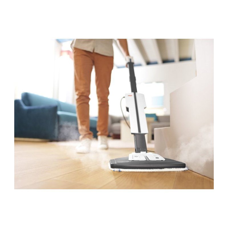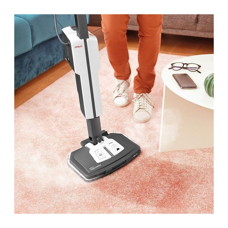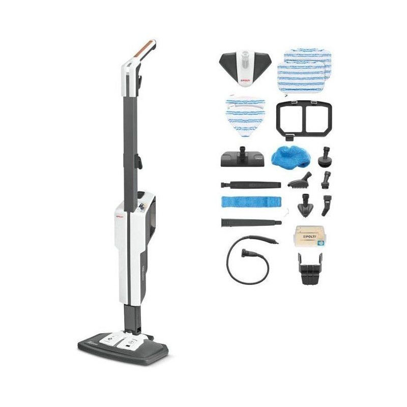 Le POLTI VAPORETTO SV660 STYLE est le balai vapeur idéal pour un nettoyage rapide, naturel et efficace de toute la maison. Grâce a sa technologie vapeur haute performance et a sa conception 2-en-1, il s'utilise aussi bien comme balai vapeur que comme nettoyeur a main pour traiter facilement les surfaces en hauteur, les tissus, les joints ou les zones difficiles d'acces. Avec ses 1500 W, il chauffe rapidement, et son réservoir de 0,5 L assure une autonomie confortable pour un nettoyage complet, sans produits chimiques. Adapté a tous les sols, il élimine facilement saletés, traces et bactéries tout en laissant une sensation de fraîcheur. Son câble de 6 m offre une excellente liberté de mouvement, et son design gris/blanc apporte une touche moderne et élégante a vos sessions ménage. Grâce a ses accessoires pratiques, il devient un allié du quotidien pour une maison propre, saine et agréablement parfumée.