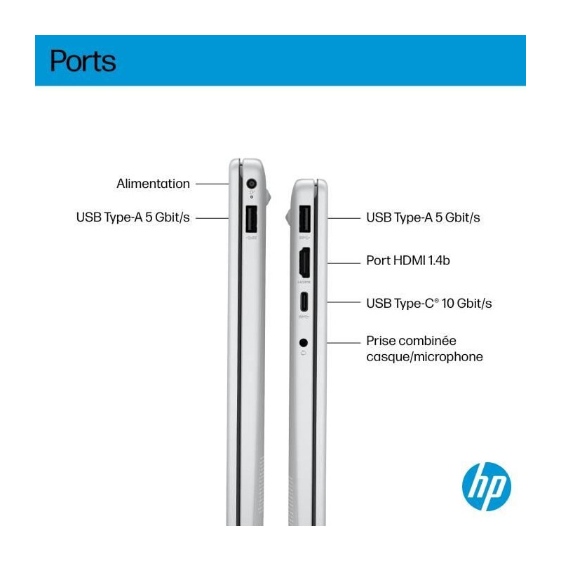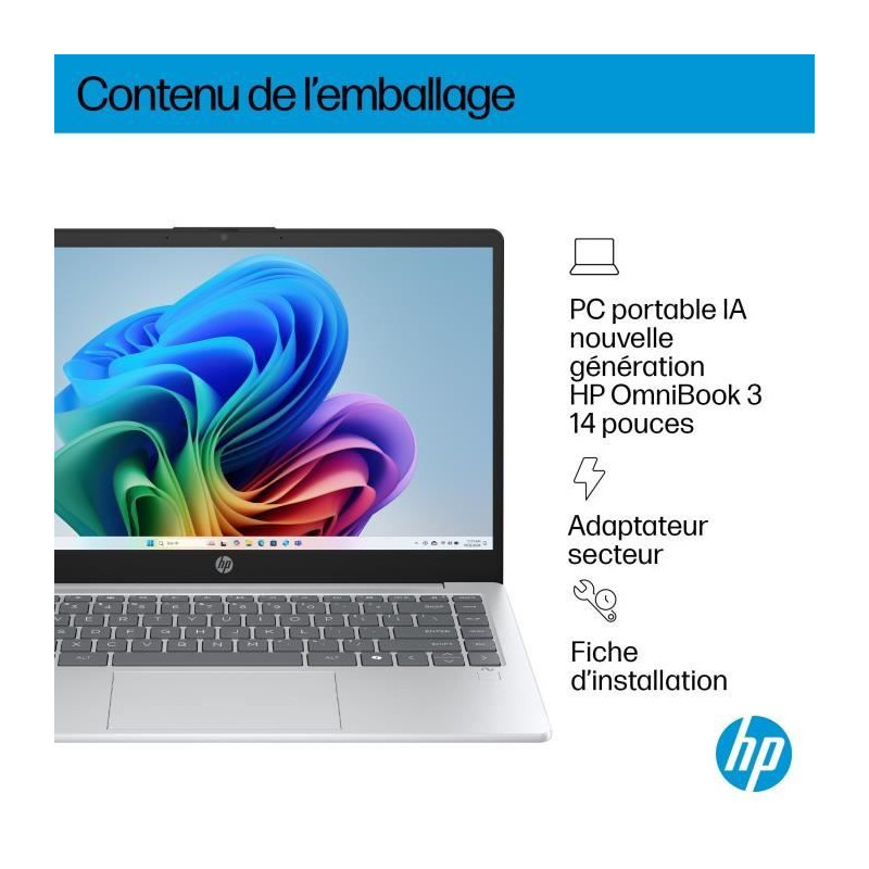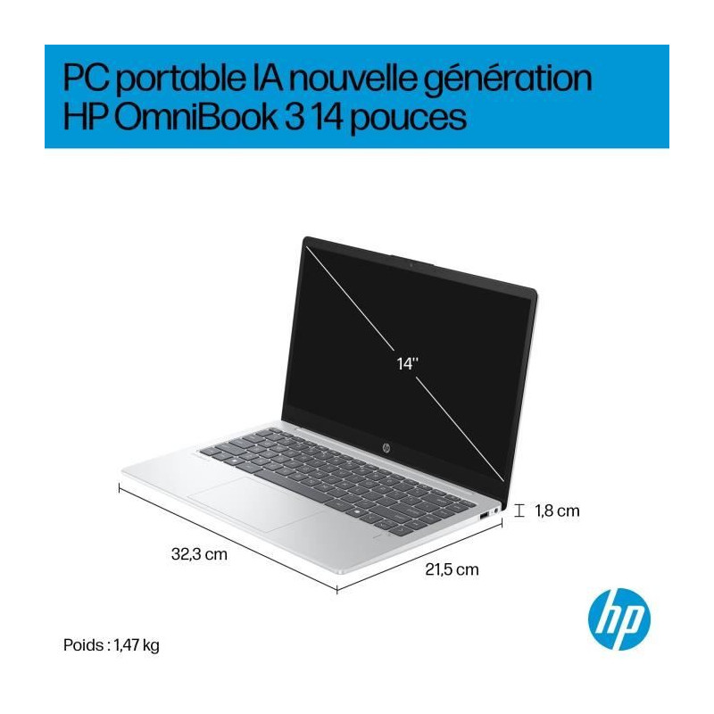 PC Portable HP Omnibook 3 14-ha0015nf - Windows 11 - 14 FHD IPS - Ryzen AI 5 340 - RAM 16Go - Stockage 512Go SSD - AZERTY
