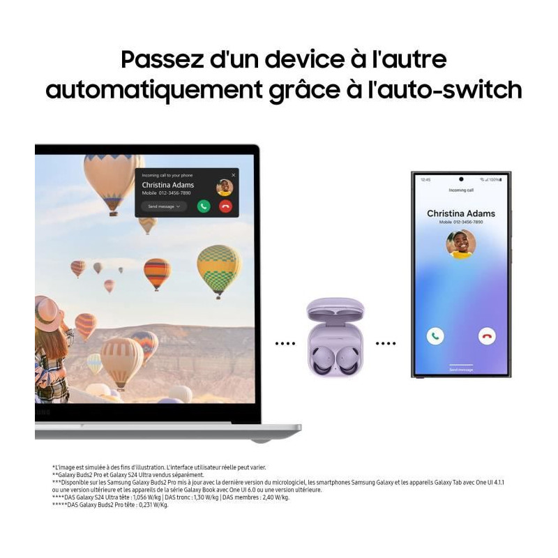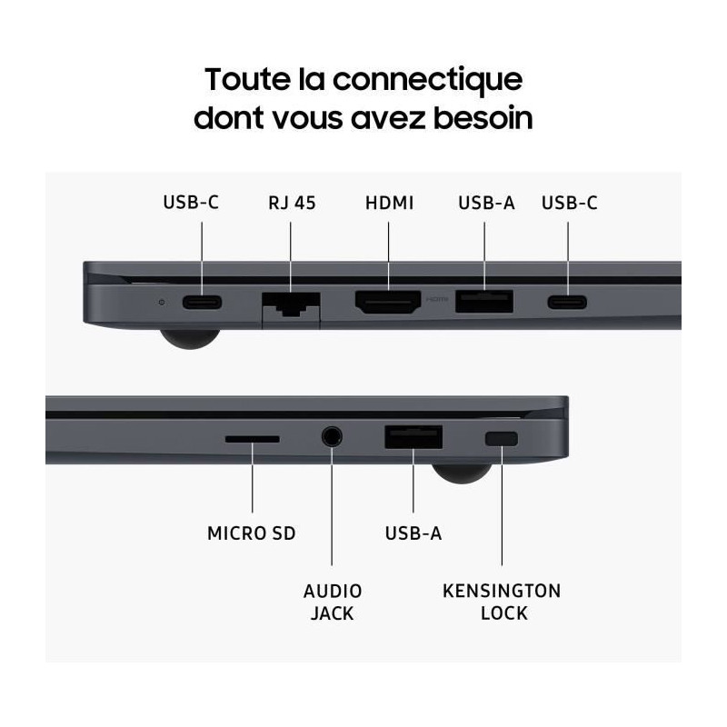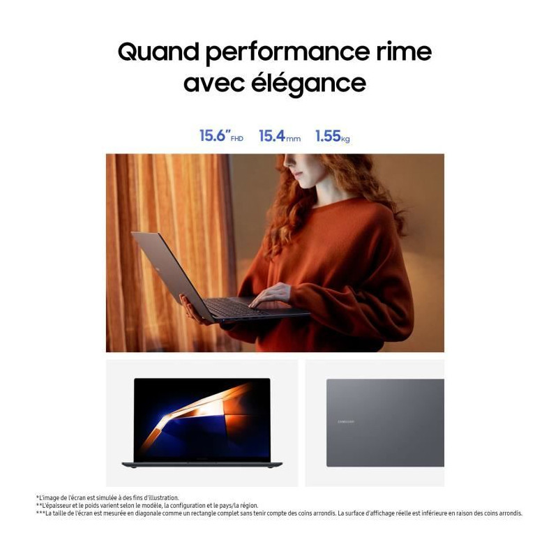 Le PC portable Samsung Galaxy Book4 (15.6", i5, 8Go) est conçu pour vous accompagner dans tous vos projets, qu'ils soient professionnels ou personnels. Sa puissance et sa polyvalence en font un allié de choix au quotidien. Il integre une connectique complete avec Thunderbolt(TM) 4, HDMI, USB 3.2 Type-A, microSD, prise casque/micro et meme un port RJ45 pour une connexion LAN rapide, sans besoin d'adaptateur. Léger et compact, son chargeur se glisse facilement dans votre sac pour vous suivre partout. Côté audio, profitez d'un son immersif grâce aux deux haut-parleurs intégrés avec technologie Dolby Atmos. Pour des appels vidéo de qualité, utilisez votre smartphone Galaxy comme webcam et basculez entre les caméras pour un angle parfait et une image haute résolution. Retrouvez facilement les fichiers de votre smartphone Galaxy sur l'écran du Galaxy Book4, sans câble. Sublimez vos photos avec l'IA intégrée dans l'application Galerie : améliorez la netteté, ajustez les ombres et éliminez les reflets en quelques clics. Samsung Studio vous permet de commencer un montage sur smartphone et de le finaliser sur votre PC portable Galaxy Book4. Vos Galaxy Buds passent automatiquement du PC a votre smartphone lors d'un appel, pour ne rien manquer. Grâce a la fonction multi-tâches, contrôlez votre smartphone ou tablette Galaxy depuis votre PC, copiez-collez du contenu ou déplacez des fichiers facilement. Partagez vos fichiers rapidement et en toute sécurité avec Quick Share et Private Share, qui vous permettent de fixer une date d'expiration et de chiffrer vos données. Enfin, avec Mobile Connecté, accédez a vos applis, SMS et appels de votre smartphone directement sur votre Galaxy Book4.