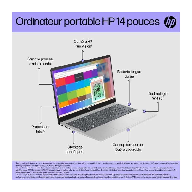 PC Portable HP 14-ep0058nf - Windows 11 - 14 FHD - Core i5-1334U - RAM 16Go - Stockage 512Go SSD - AZERTY