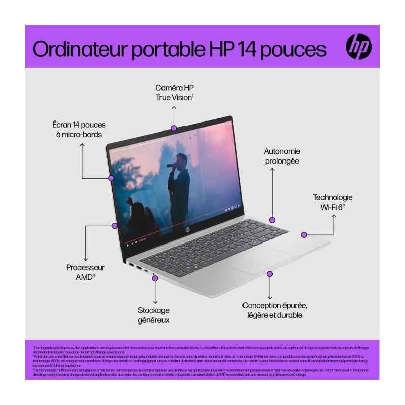 PC Portable HP 14-em0003nf - Windows 11 - 14 FHD IPS - Ryzen 7 7730U - RAM 16Go - Stockage 1To SSD - AZERTY