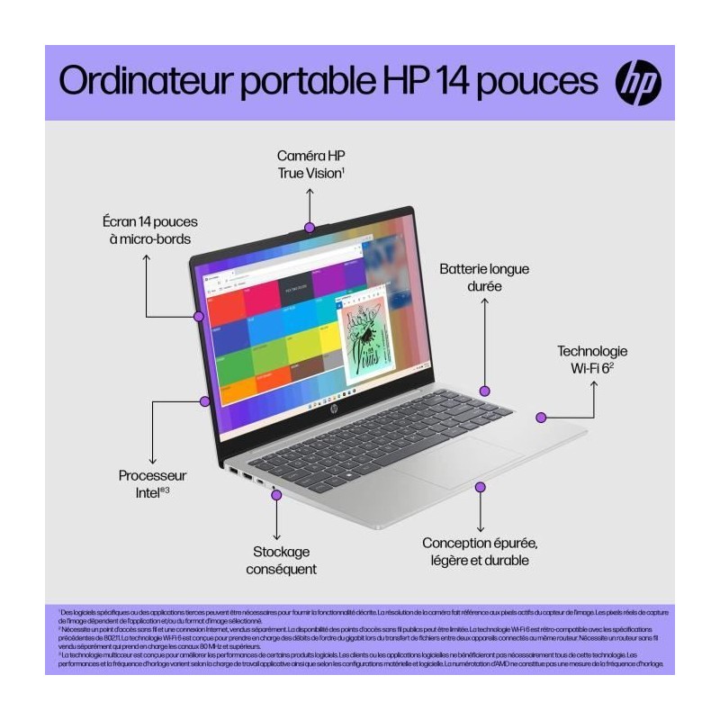 PC Portable HP 14-ep1006nf - Windows 11 - 14" FHD - Intel Core 5 120U - RAM 16Go - Stockage 512Go SSD - Intel UHD Graphics - AZERTY