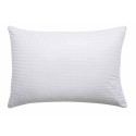 L'oreiller EPURE de TOISON D'OR allie douceur et volume pour des nuits reposantes. Son enveloppe en satin de coton a rayure jacquard et son garnissage en fibre creuse siliconnée garantissent un confort médium optimal. Dimensions : 50x75 cm, coloris blanc.
