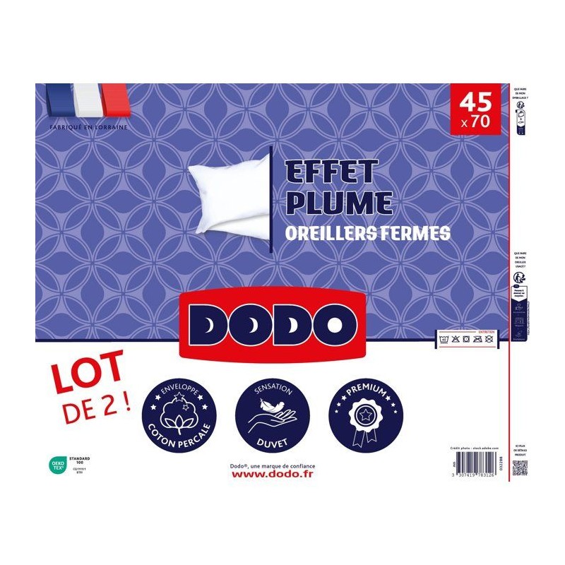 DODO - Lot de 2 oreillers - Effet Plume - 45 x 70 cm - 100% Polyester
