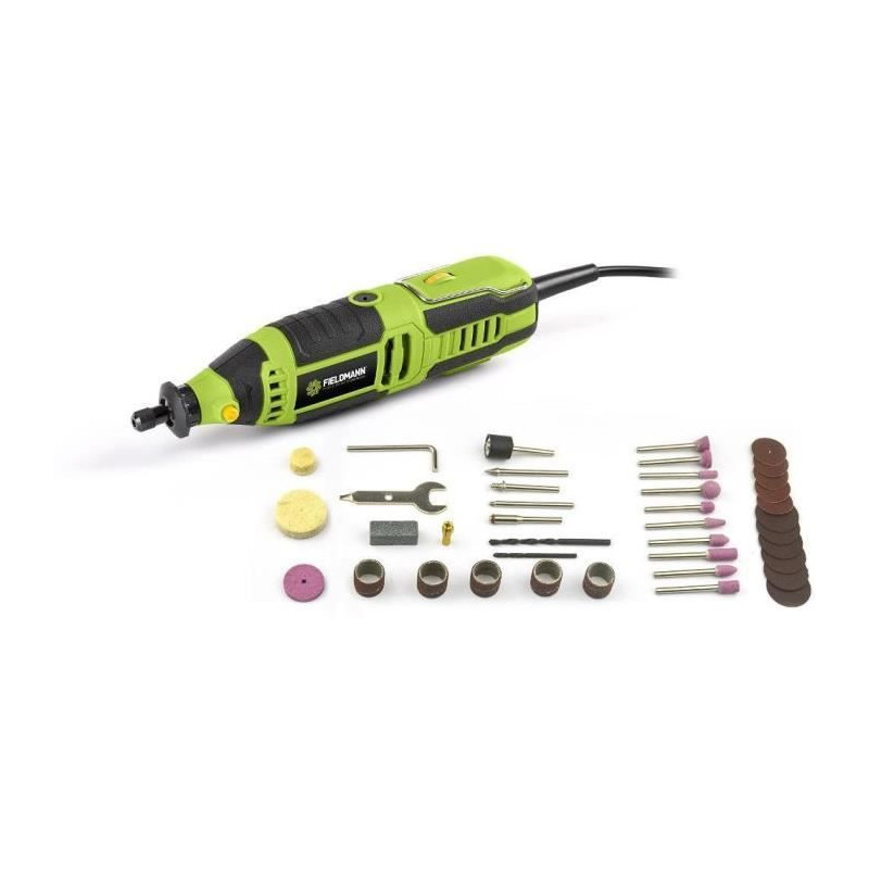 Découvrez l'outil multifonction électrique Fieldmann FDMB 200160-E, idéal pour les bricoleurs. Avec une puissance de 170W et une vitesse réglable de 10 000 a 36 000 tr/min, il est livré avec 40 accessoires pour une utilisation polyvalente. Sa poignée ergonomique assure un confort optimal lors de vos travaux de précision.