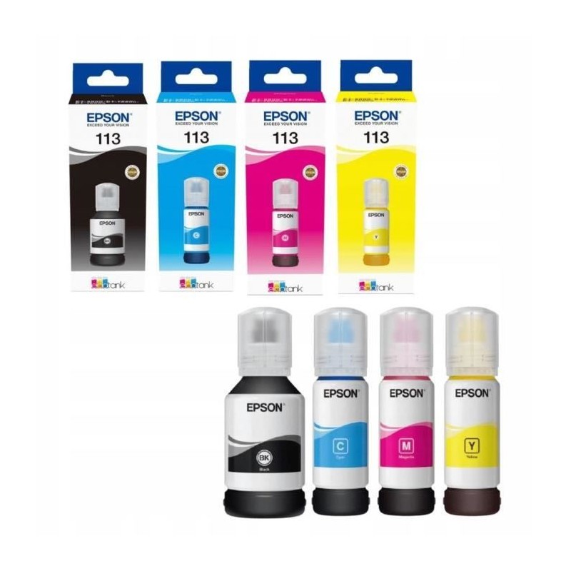 Multipack de 4 Bouteilles d'encre - EPSON - EcoTank 113 - Noir - Jaune - Cyan - Magenta