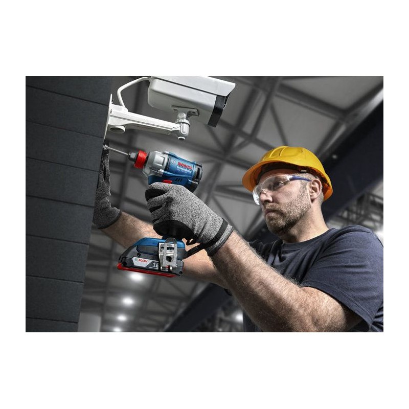 Set Bosch 18V - Perceuse, boulonneuse et perforateur dans sac textile renforcéPerceuse visseuse GSR 18V-65 Professional- Moteur sans charbon (brushless)- Couple max : 65 Nm- Mandrin métallique 13 mm- Fonction KickBack Control pour plus de sécurité- Éclairage LED double pour une visibilité optimaleVisseuse a chocs / boulonneuse GDX 18V-285 Professional- Couple max : 285 Nm- Porte-outil 2 en 1 : ¼' hex + ½' carré-