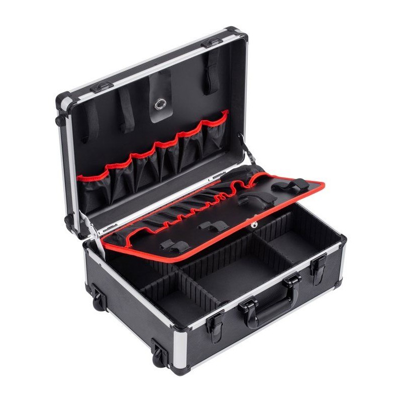 Trolley a outils vide - MEISTER - Alu - 46 x 35 x 19 cm - Compartiments 15 + 6 - Poignée extensible + 2 roulettes