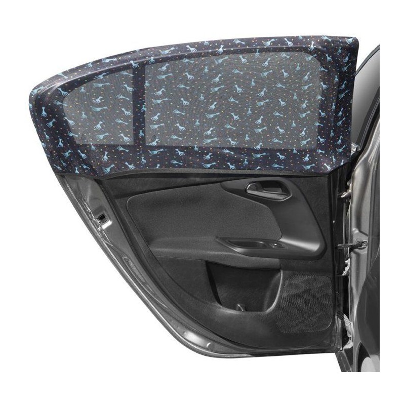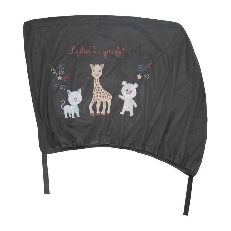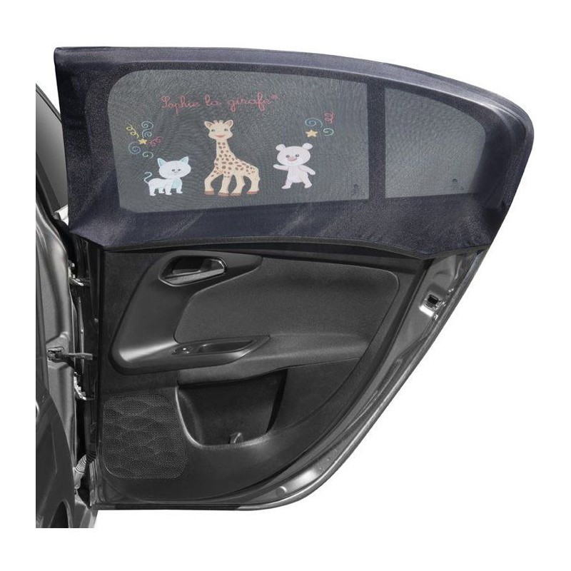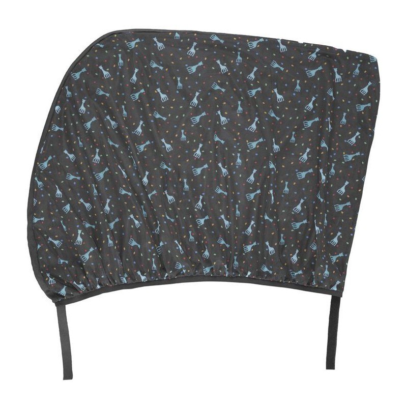 Un lot de deux pare-soleil universels faciles a enfiler comme une chaussette sur les cadres de fenetre. Ils protegent bébé de la chaleur et de la lumiere tout en affichant l'adorable Sophie. Légers, pratiques et lavables en machine.