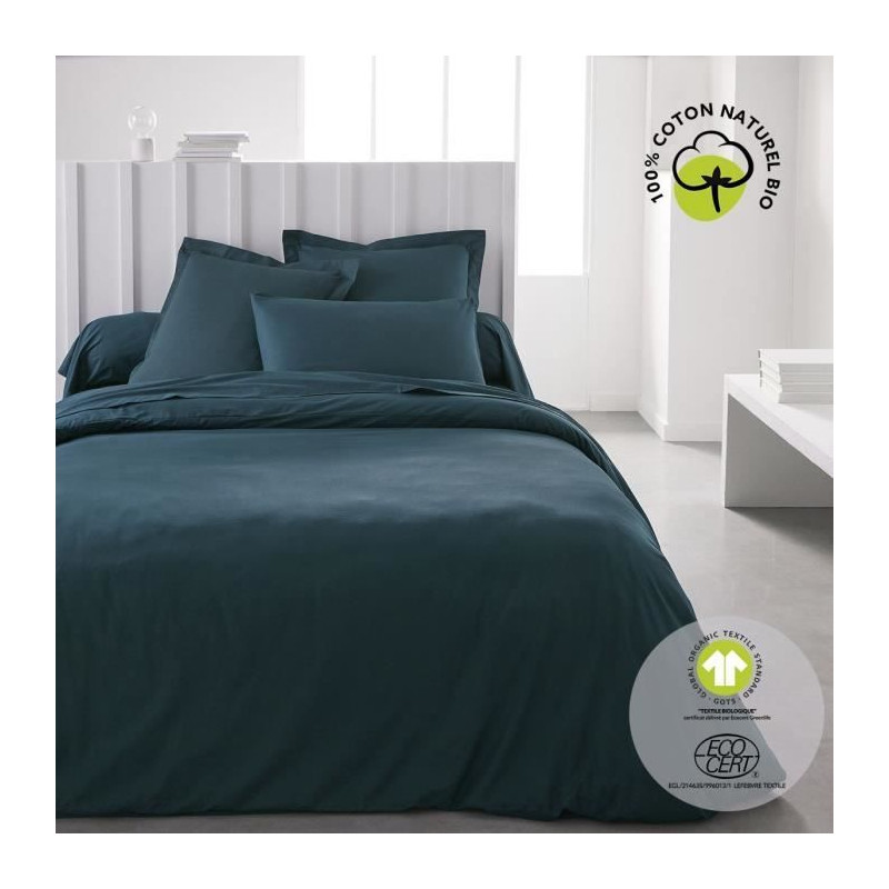 Parure de lit - TODAY - 240 x 260 cm - 100% Coton Bio - Fentes passe-main - Lavable 60°