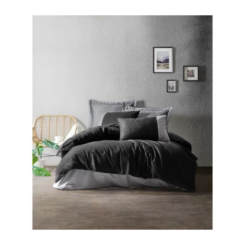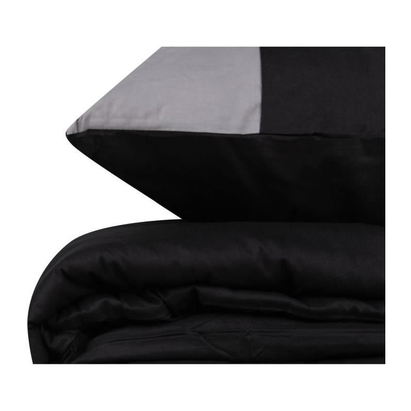 Parure de lit - 129CTN62694 - 1 housse de couette 220 x 240 cm + 2 taies d'oreiller 60 x 60 cm - 100% coton ranforcé - Noir