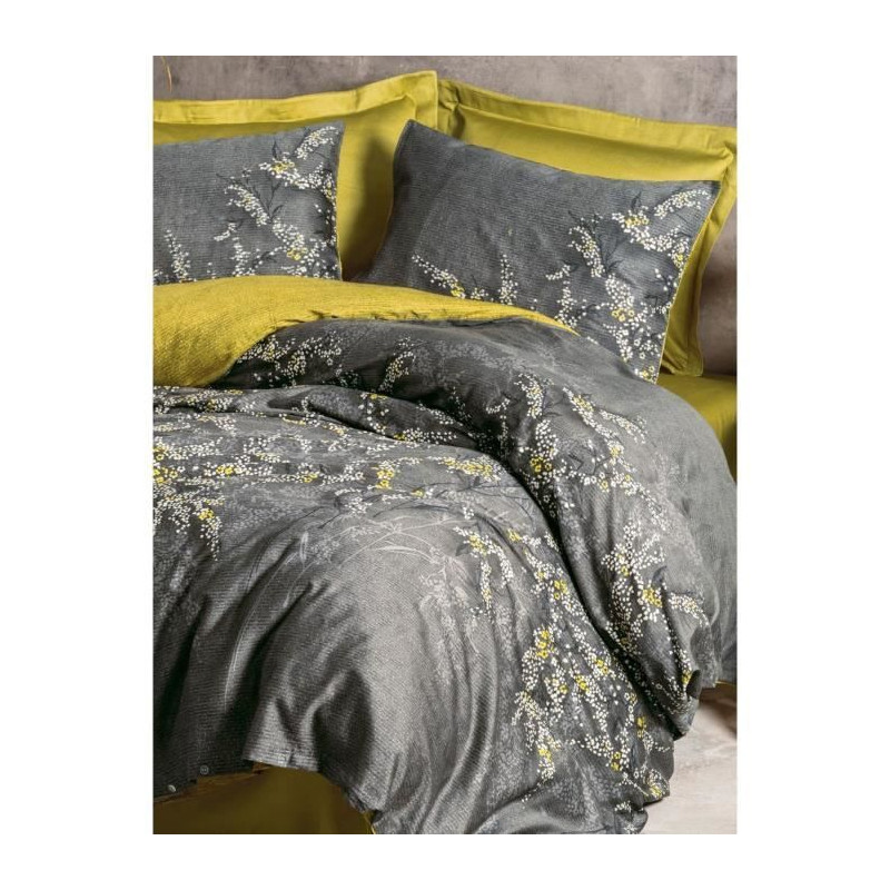 Parure de lit - 129CTN63945 - 1 housse de couette 220 x 240 cm + 2 taies d'oreiller 60 x 60 cm - Satiné 100% coton - Anthracite