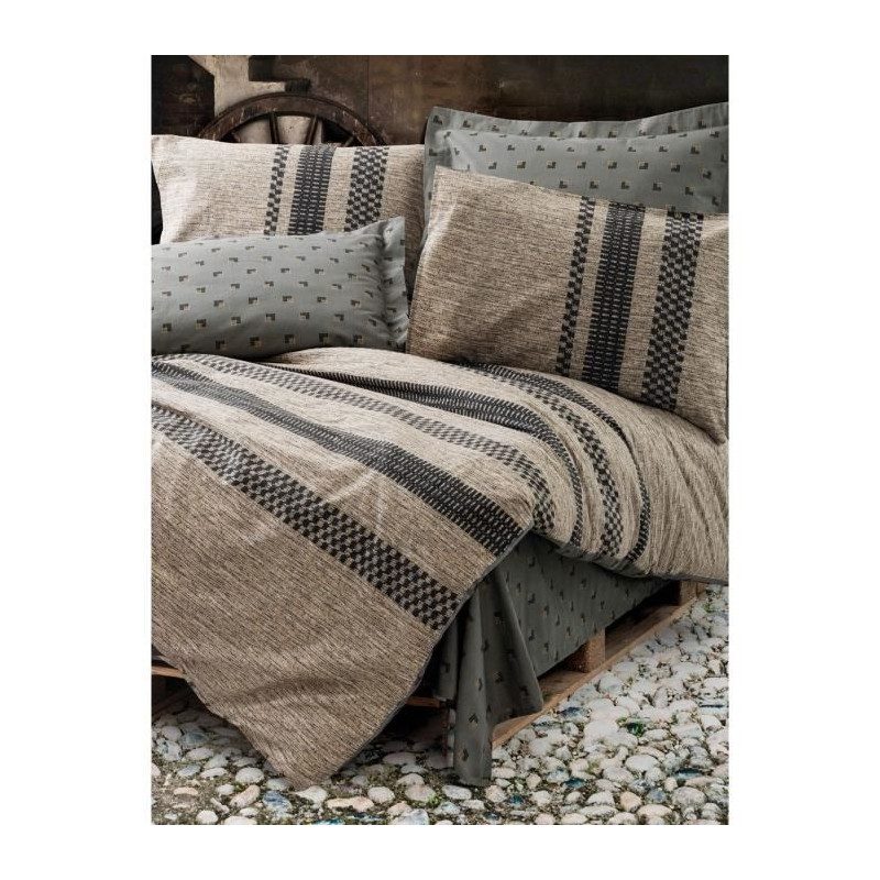 Parure de lit - 129CTN64282 - 1 housse de couette 220 x 240 cm + 2 taies d'oreiller 60 x 60 cm - 100% coton ranforcé - Brun