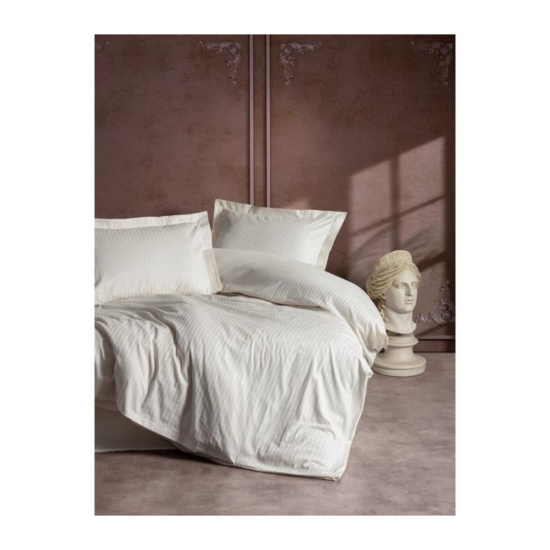 Parure de lit - 129CTF24635 - 1 housse de couette 220 x 240 cm + 2 taies d'oreiller 60 x 60 cm - Satiné 100% coton - Écru