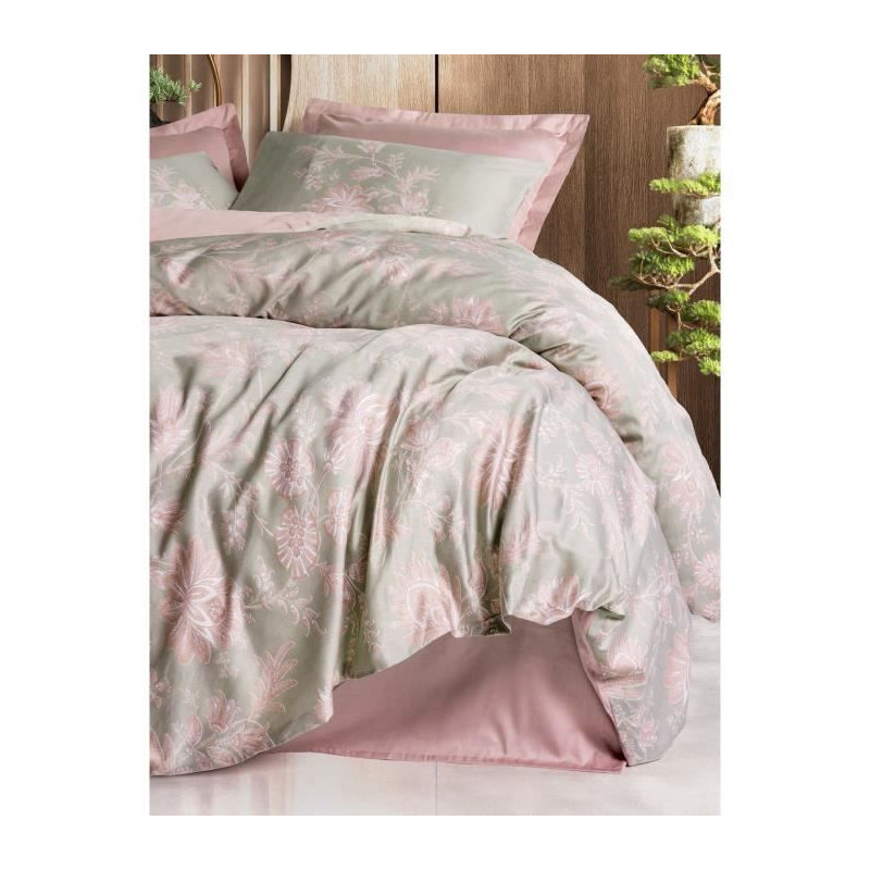 Parure de lit - 129CTN64854 - 1 housse de couette 220 x 240 cm + 2 taies d'oreiller 60 x 60 cm - Satiné 100% coton - Poudre