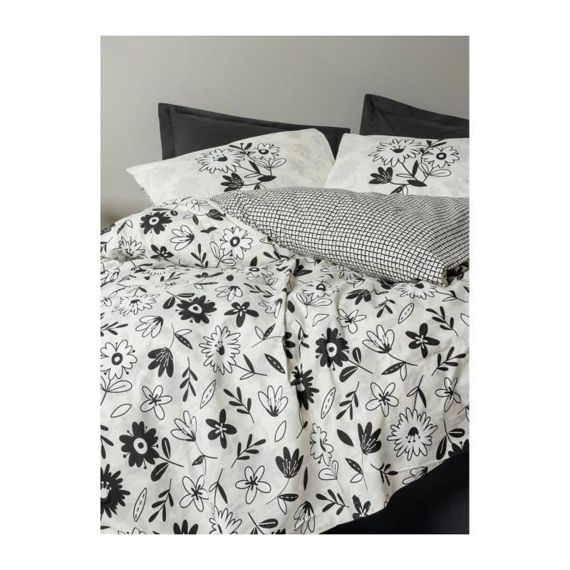 Parure de lit - 129CTN64831 - 1 housse de couette 220 x 240 cm + 2 taies d'oreiller 60 x 60 cm - 100% coton ranforcé - Noir