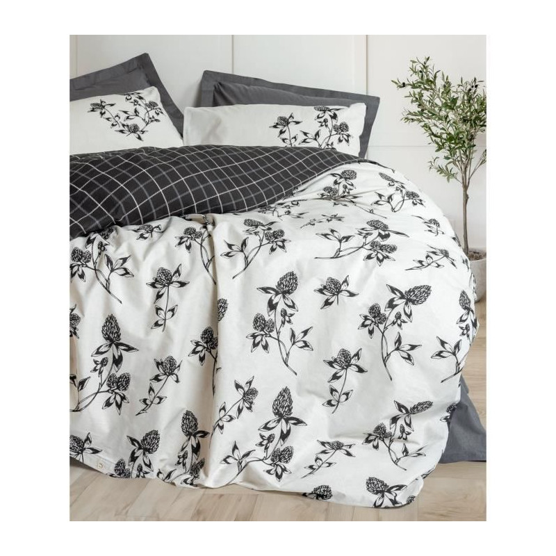 Parure de lit - 129CTN64832 - 1 housse de couette 220 x 240 cm + 2 taies d'oreiller 60 x 60 cm - 100% coton ranforcé - Anthraci