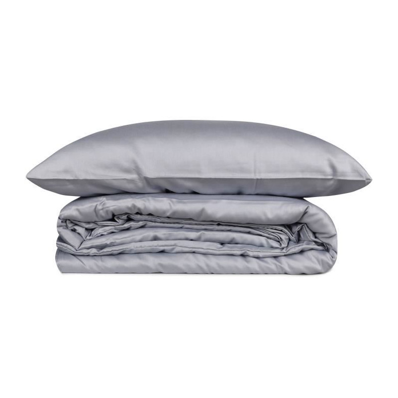 Parure de lit - 129CTN63609 - 1 housse de couette 220 x 240 cm + 2 taies d'oreiller 60 x 60 cm - Satiné 100% coton - Gris