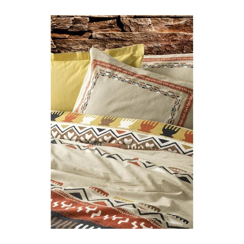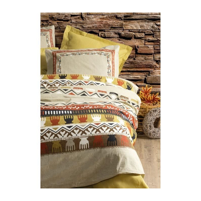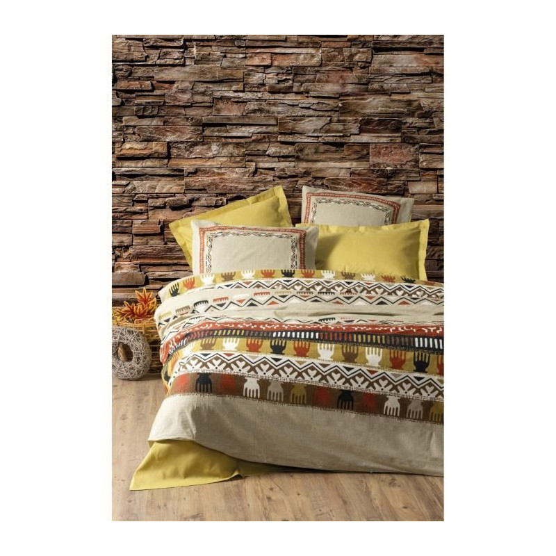 Parure de lit - 129CTN64615 - 1 housse de couette 220 x 240 cm + 2 taies d'oreiller 60 x 60 cm - 100% coton ranforcé - Moutarde