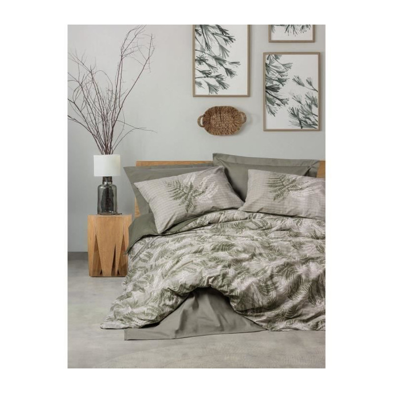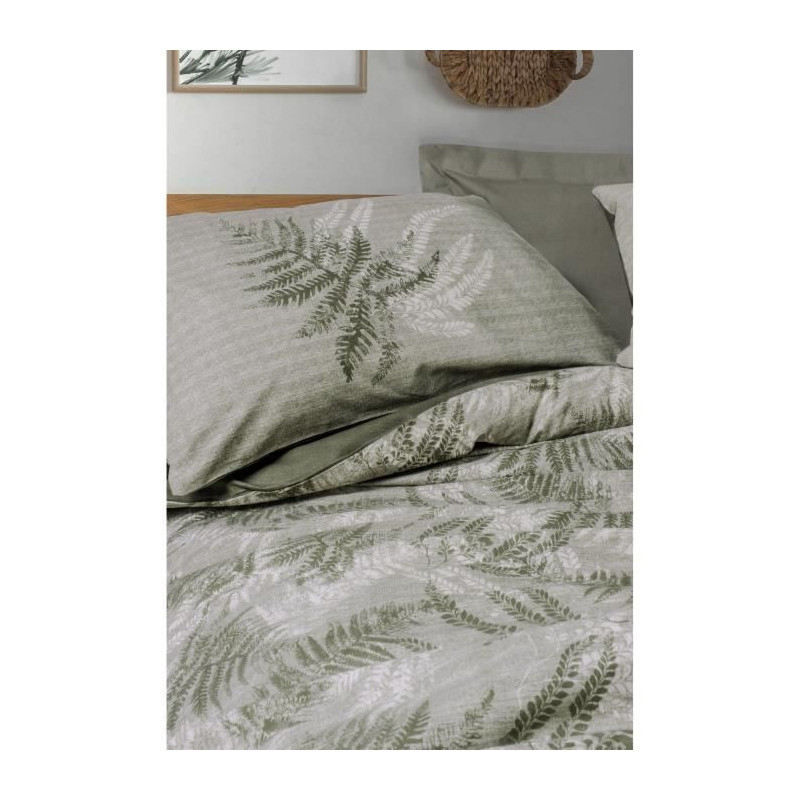 Parure de lit - 129CTN64491 - 1 housse de couette 220 x 240 cm + 2 taies d'oreiller 60 x 60 cm - 100% coton ranforcé - Kaki