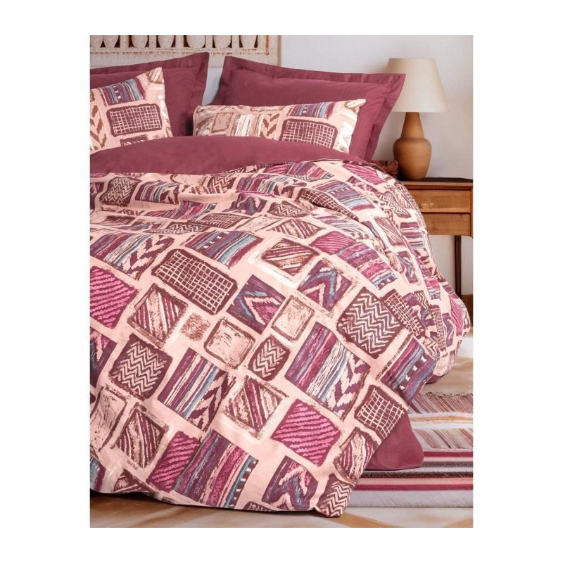 Parure de lit - 129CTN64840 - 1 housse de couette 220 x 240 cm + 2 taies d'oreiller 60 x 60 cm - 100% coton ranforcé - Rouge