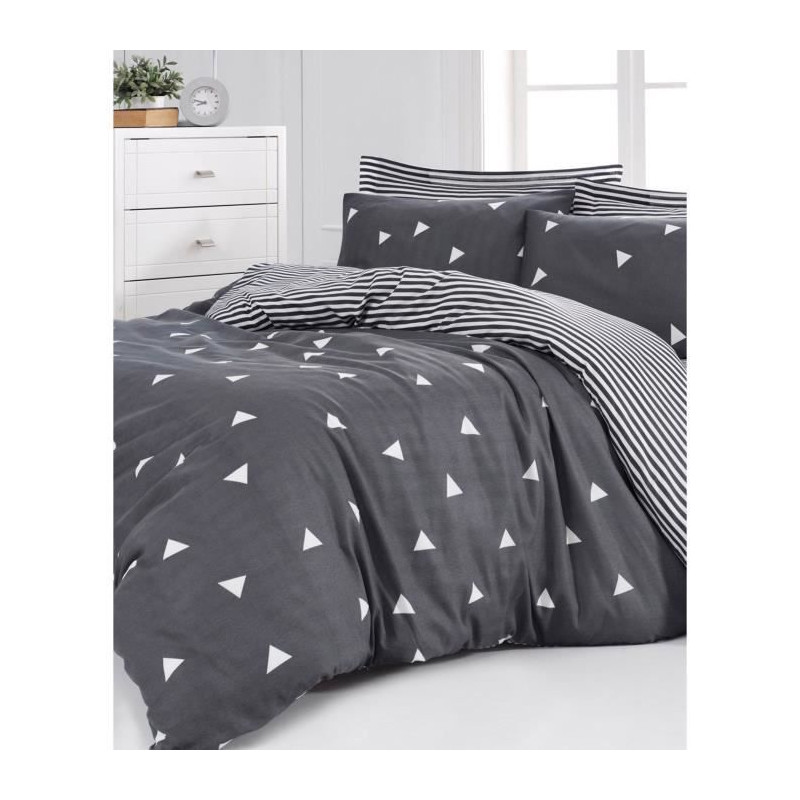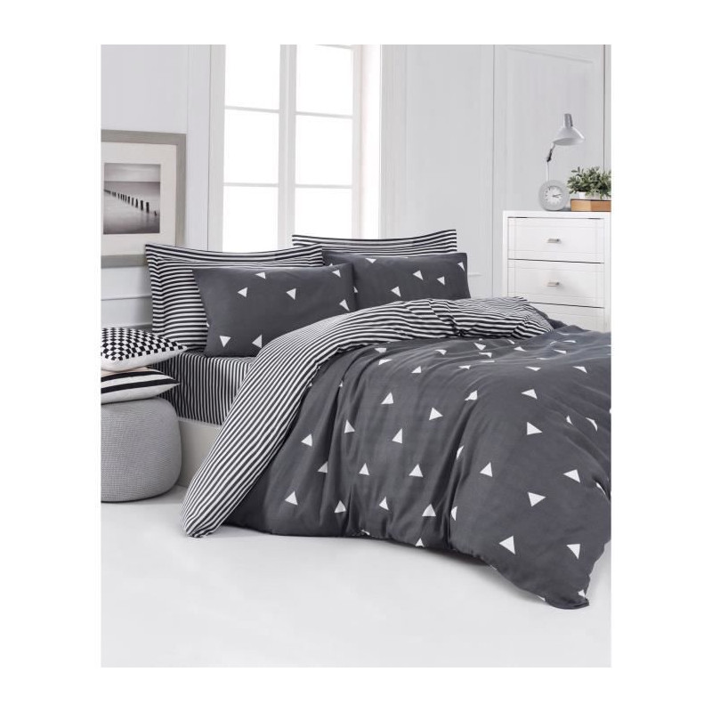 Parure de lit - 1 housse de couette 220 x 240 cm + 2 taies d'oreiller 60 x 60 cm - 65% coton, 35% polyester - Gris