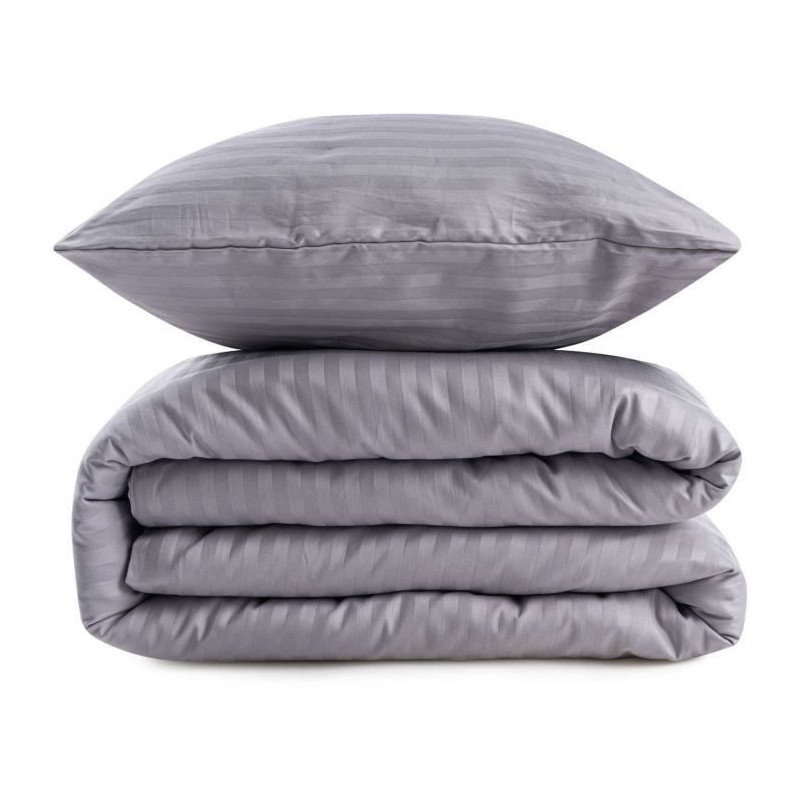 Parure de lit - 1 housse de couette 220 x 240 cm + 2 taies d'oreiller 60 x 60 cm - 80% coton, 20% polyester - Gris