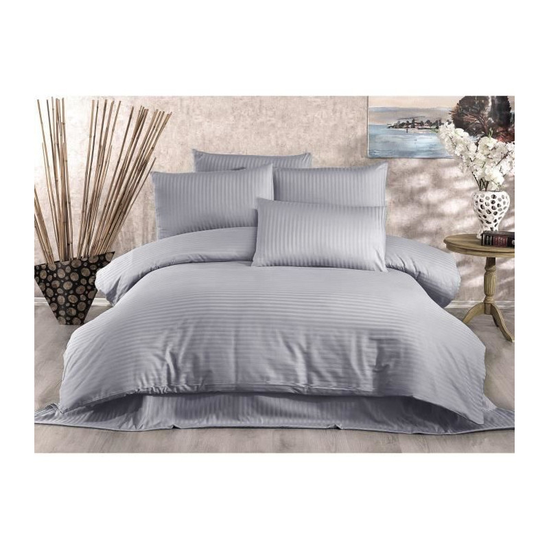 Parure de lit - 1 housse de couette 220 x 240 cm + 2 taies d'oreiller 60 x 60 cm - 70% polyester, 30% coton - Gris