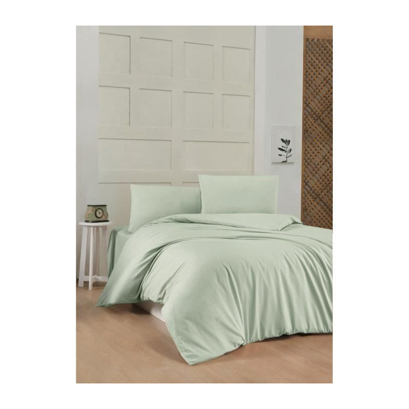 Parure de lit - 1 housse de couette 220 x 240 cm + 2 taies d'oreiller 60 x 60 cm - 100% coton renforcé - Vert