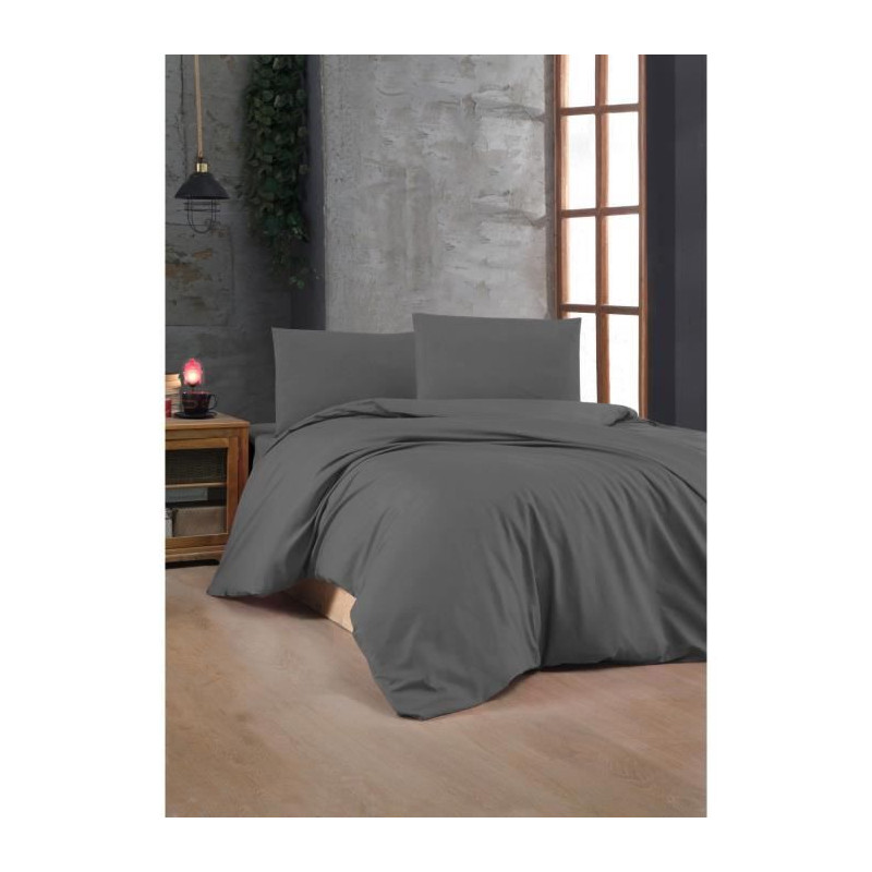 Parure de lit - 1 housse de couette 220 x 240 cm + 2 taies d'oreiller 60 x 60 cm - 100% coton renforcé - Anthracite