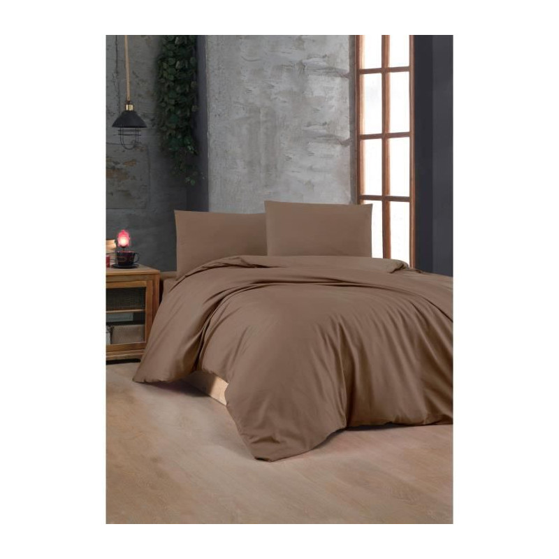 Parure de lit - 1 housse de couette 220 x 240 cm + 2 taies d'oreiller 60 x 60 cm - 100% coton renforcé - Brun