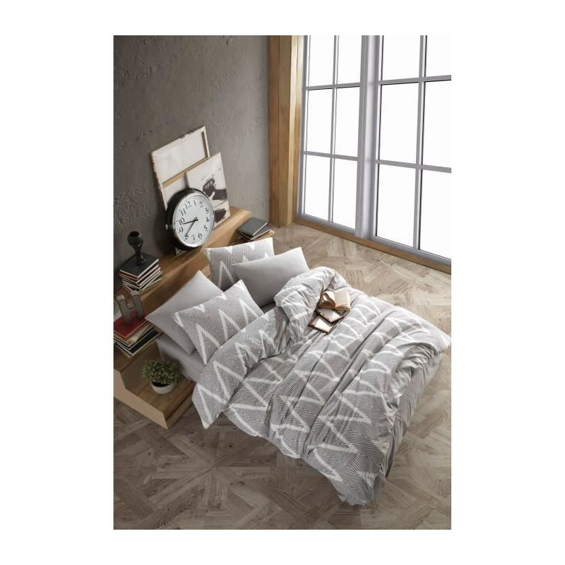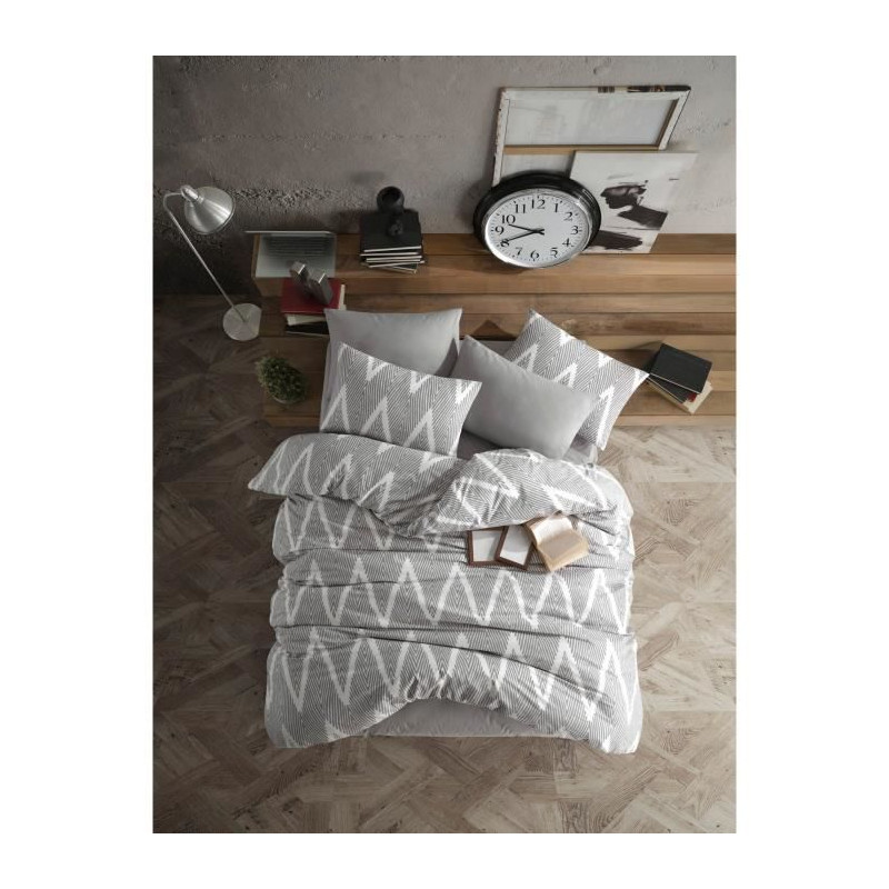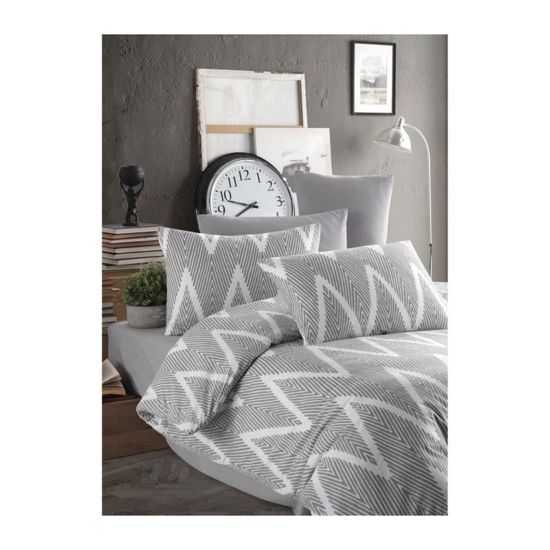 Parure de lit - 1 housse de couette 220 x 240 cm + 2 taies d'oreiller 60 x 60 cm - 65% coton, 35% polyester - Gris