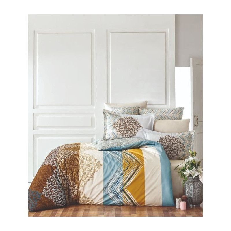 Découvrez le confort et le luxe ultimes avec notre ensemble de housses de couette renforcé King. Transformez votre chambre a coucher en une oasis de sérénité avec notre ensemble de housses de couette renforcé King. Fabriqué en 100% coton renforcé, ce luxueux ensemble de literie vous enveloppera d'un nuage de confort chaque nuit. La douceur du 100% coton renforcé. Se laisser tenter par la douceur du 100% coton renforcé. Fabriqué a partir de coton renforcé de premiere qualité, notre ensemble de housses de couette offre une sensation de douceur et de souplesse sur votre peau. Faites l'expérience du confort et du luxe ultimes en vous blottissant dans ce somptueux ensemble de literie. Créez un look élégant et stylé dans votre chambre a coucher. Avec son design intemporel et sa combinaison de couleurs exquise, notre ensemble de housses de couette ajoutera une touche de sophistication a la décoration de votre chambre a coucher. La combinaison des couleurs blanc, marron, bleu et moutarde crée un look harmonieux et visuellement attrayant qui élevera instantanément l'ambiance de votre espace. Facile a nettoyer et a entretenir. Nous comprenons l'importance de la commodité dans votre vie active. C'est pourquoi notre ensemble de housses de couette est lavable en machine a 30 °C, ce qui vous permet de le garder propre et frais. Il suffit de le mettre dans la machine a laver et de profiter d'un entretien sans souci. Détails techniques. Taille de la housse de couette : 240 x 220 cm. Taie d'oreiller : 60 x 60 cm (2 pieces). Matiere : 100% coton renforcé. Nombre de fils : 140. Systeme de fermeture de la taie d'oreiller : Enveloppe. Systeme de fermeture de la housse de couette : Boutons. Revitalisez votre chambre a coucher et offrez-vous le confort et le luxe ultimes avec notre ensemble de housses de couette renforcé King.